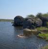 Острів ніби складений із величезних брил, тому нагадує легендарну Кам’яну Могилу. Тут також багато розломів, щілин, невеликих гротів, але петрогліфів археологи не виявили (а може ніхто їх і не шукав). Старе русло Інгулу майже повністю пересохло, тому впритул до острова під’їжджають місцеві «шанувальники прекрасного», розкладають навколо свої рядна, їдло і бухло… Як же вони псують вигляд цього прекрасного місця.